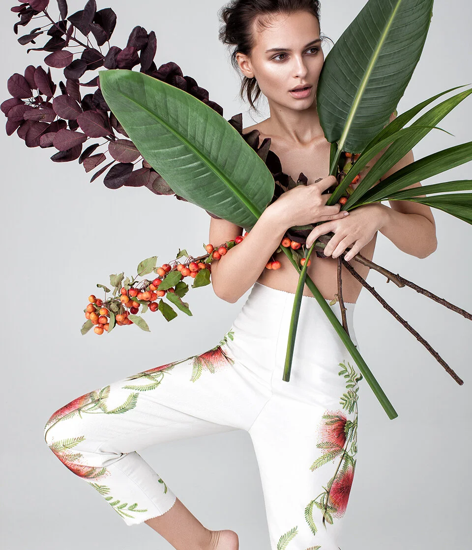 Eine Geschichte zu erzählen. Letztes Mal ging es um Lava. Inna war in Sizilien und hat Fotos vom Stromboli mitgebracht. Daraus sind dann die Prints entstanden. Wir verwenden dafür immer eigene Fotos. Bei der letzten Kollektion waren es Unterwasserbilder aus Thailand. Und wir gehen oft noch in die Bibliothek und ins Aquarium und sind dann total begeistert. Wir sehen dann die ganzen Formen und es geht sofort los. Es ist uns total wichtig, eine Geschichte zu erzählen und ein kleines Mysterium um das Ganze aufzubauen. Wir wollen immer etwas auslösen. Auch bei unseren Shows arbeiten wir immer mit befreundeten Künstlern zusammen. Einer hat ein Video für uns gemacht, ein anderer Freund die Musik. Wir wollen, dass das ein Gemeinschaftsding ist und immer etwas Künstlerisches hinzukommt. Wir haben auch immer circa vier Stücke, die wirklich nur Showpieces sind. Die transportieren vor allem die Story und davon abgeleitet sind dann die tragbaren Sachen.